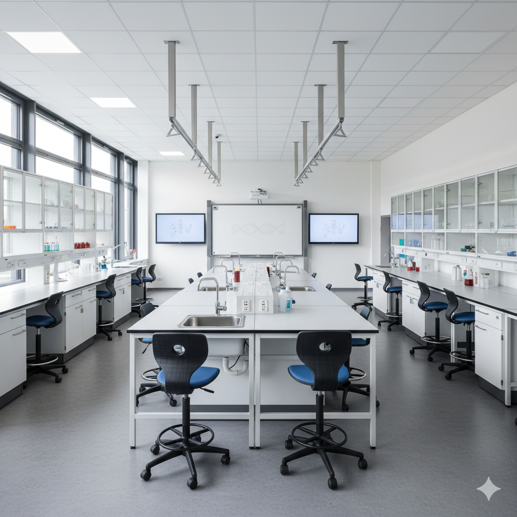Reequipamento completo de salas de aula especializadas em ciências para a Escola Quinoa (Quinoa-Schule), focada em ensino orientado para o futuro.